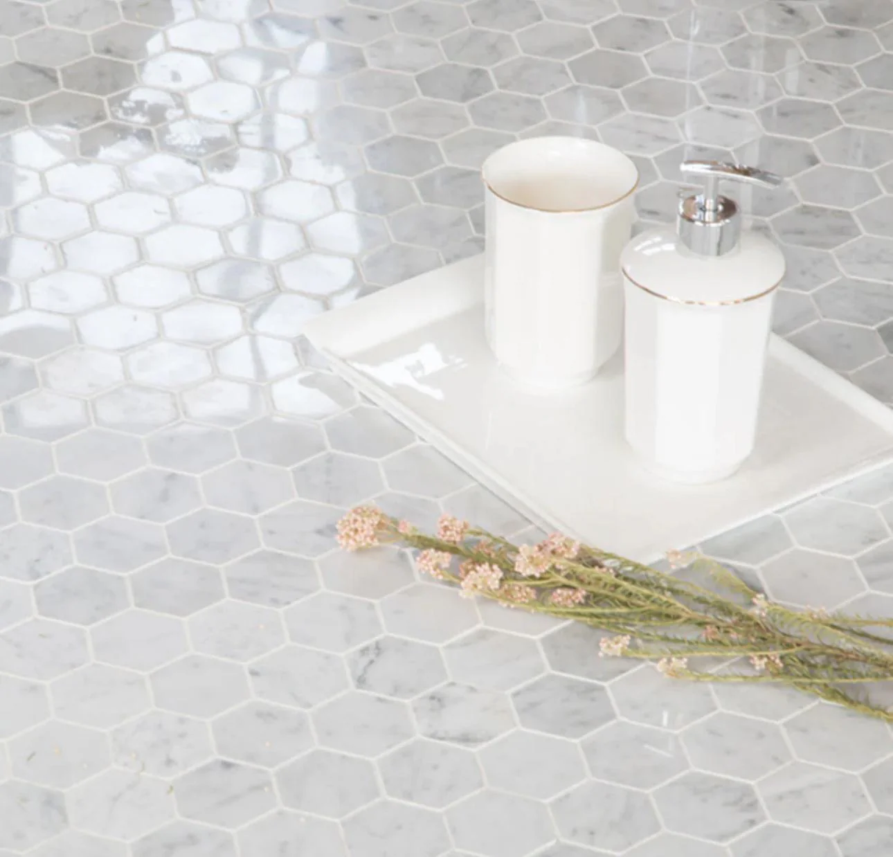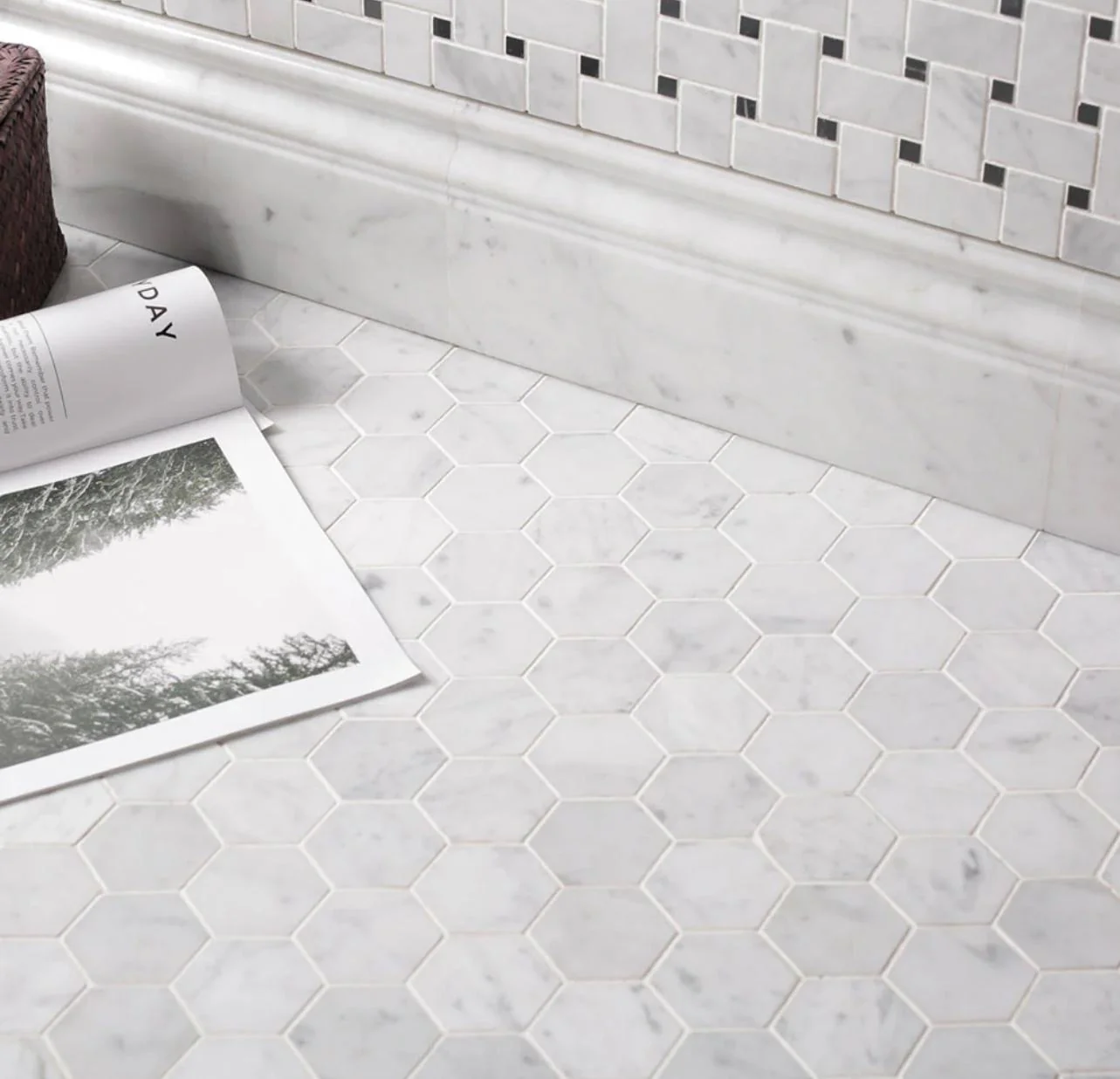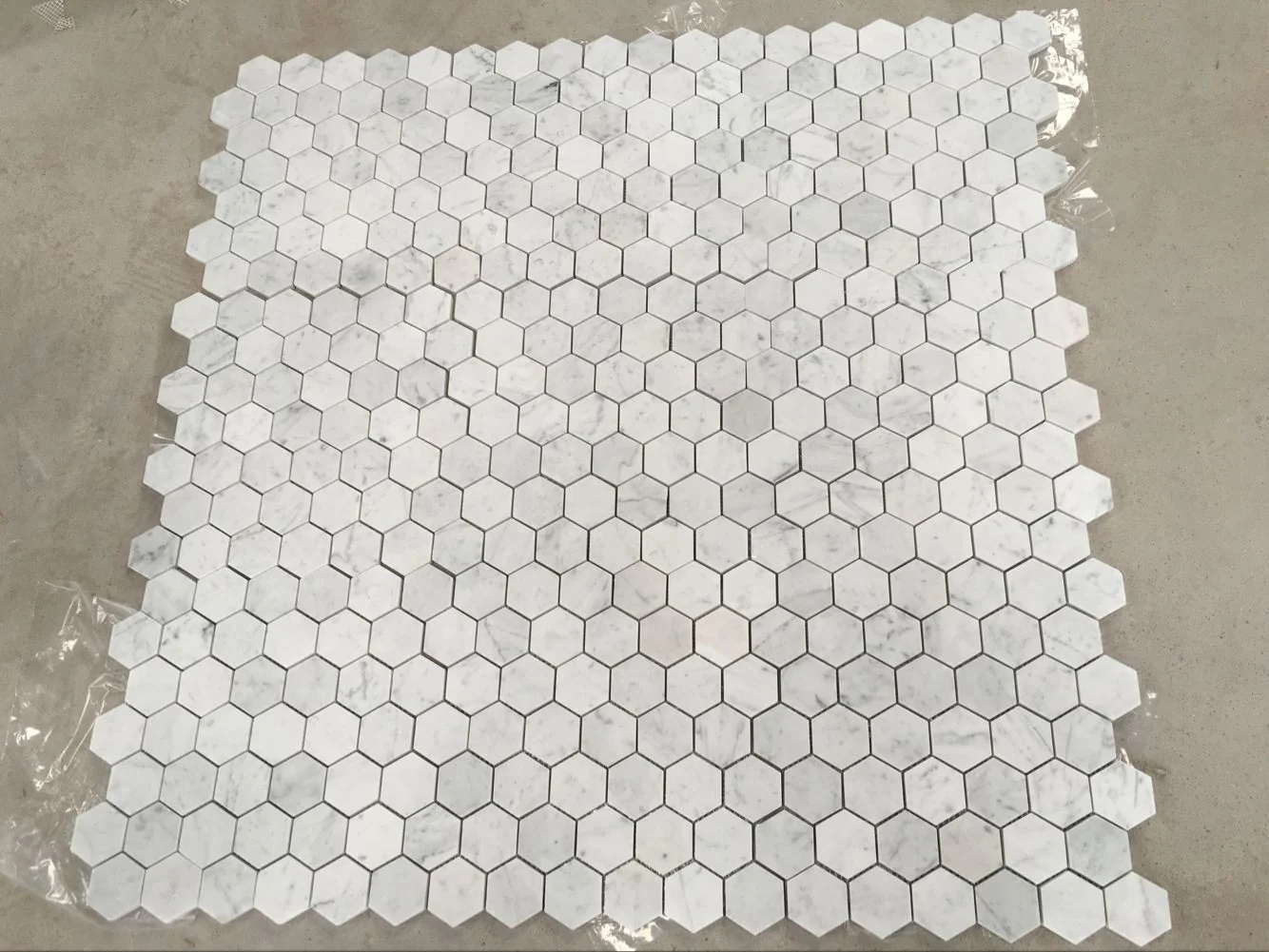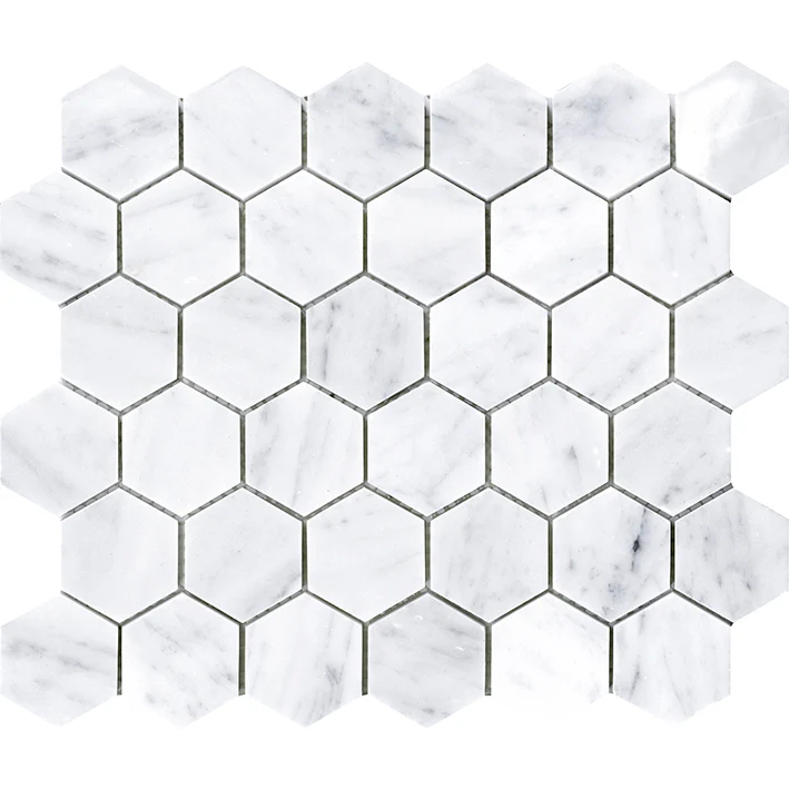 Marmer Hexagon Bianca Carrara bestaat uit elegante zeshoekige tegeltjes van 15×15 cm, die zorgvuldig zijn verwerkt op een matje met een afmeting van 22,5×37,1 cm. Dankzij deze praktische verwerking zijn de tegels eenvoudig te plaatsen en ontstaat er een prachtig, gelijkmatig patroon. Het klassieke witte Carrara-marmer, gekenmerkt door subtiele grijze aderingen, straalt luxe en verfijning uit. Deze tijdloze uitstraling maakt de tegels geschikt voor zowel moderne als traditionele interieurs, en geeft iedere ruimte; van badkamer tot keukenmuur of hal, een elegante en stijlvolle sfeer.