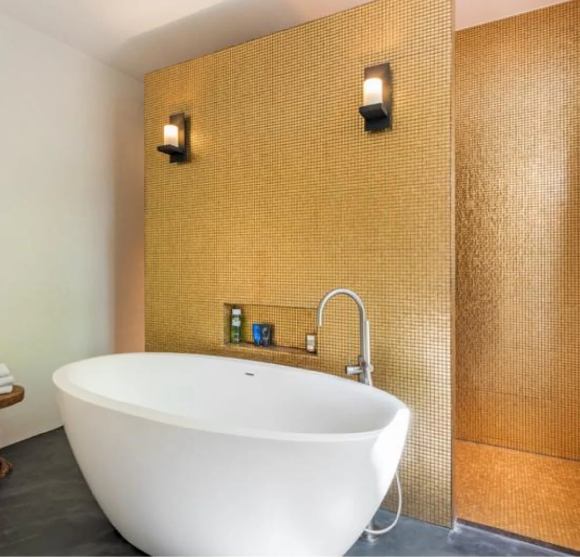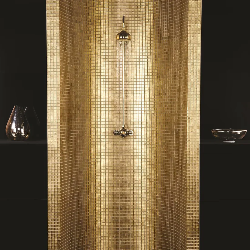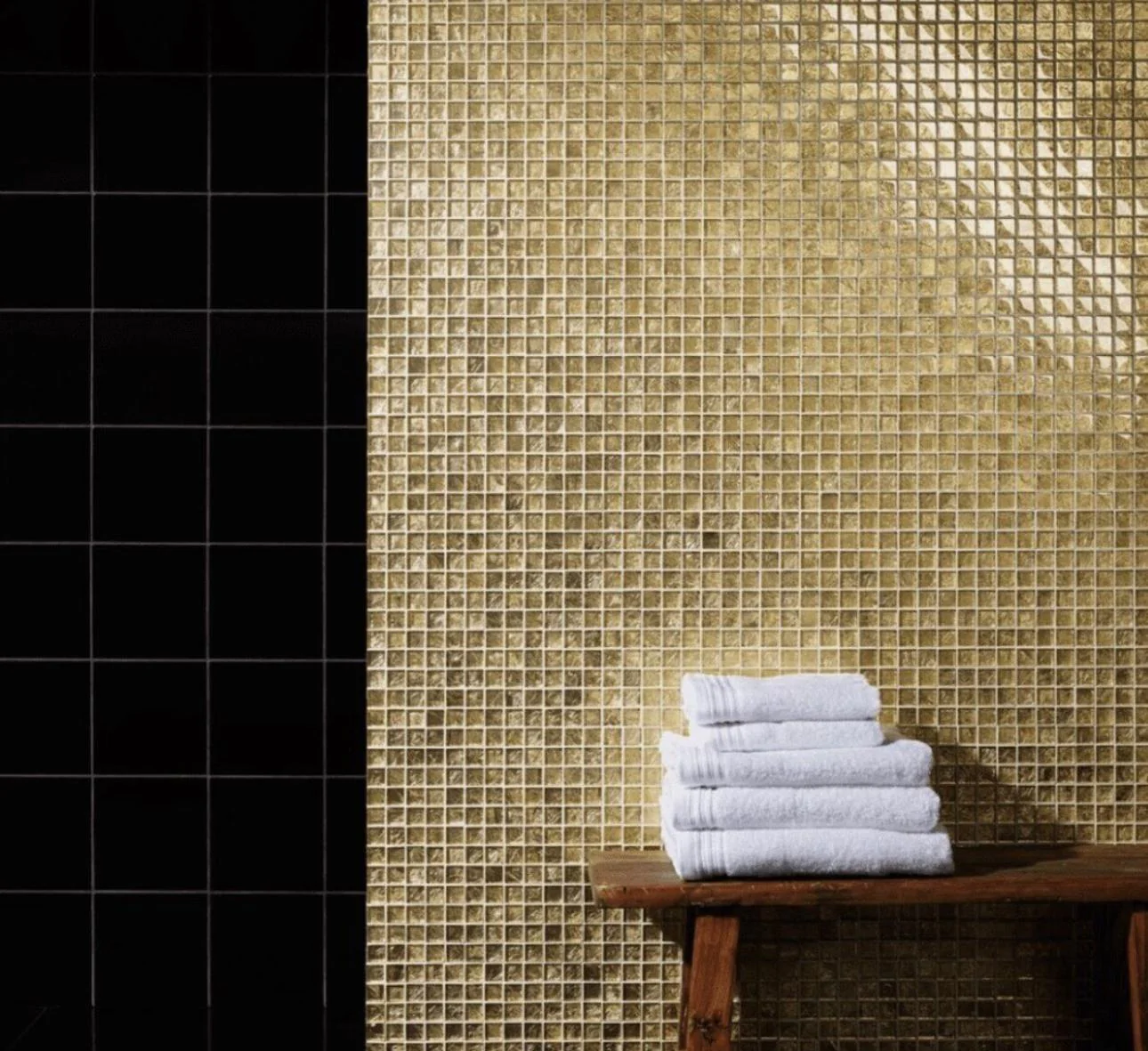 Ontdek het Gold-Glasmozaïek: breng een vleugje gouden elegantie in uw ruimte. Van vloer tot plafond of als stijlvolle rand, dit veelzijdige mozaïek is de perfecte manier om uw interieur te verfraaien. Of het nu gaat om een prachtige achterwand, een boeiende douchewand, of een decoratief element, dit mozaïek voegt een unieke charme toe aan uw neutrale interieur. Ervaar de schittering van kleur en textuur zelf. Ontdek vandaag nog de eindeloze mogelijkheden van het Gold-Glasmozaïek!