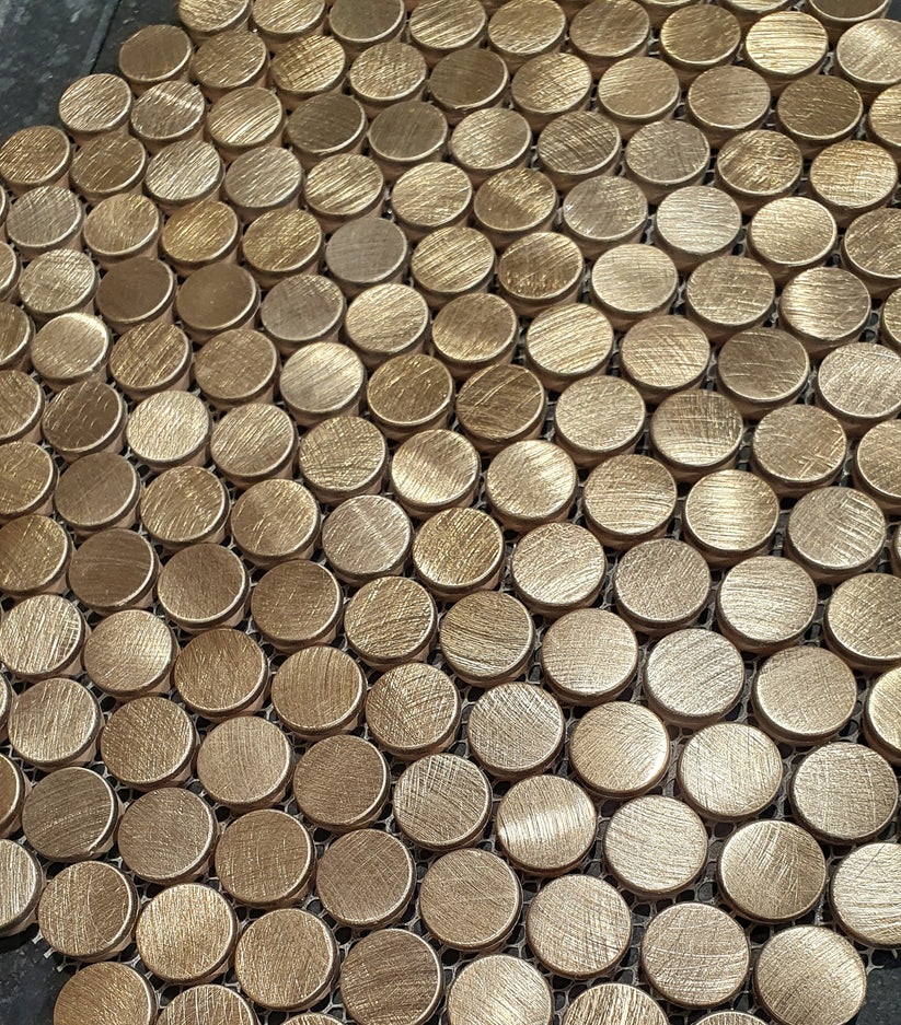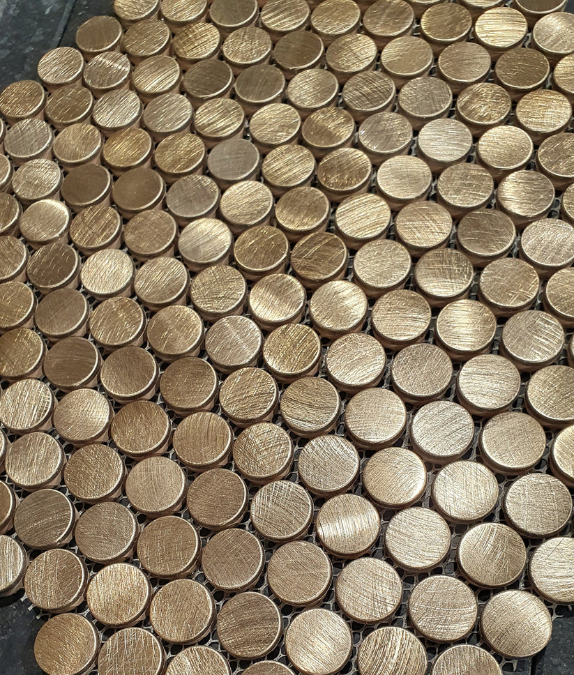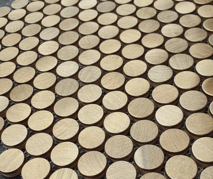 Maak een stijlvol statement in uw keuken, badkamer of woonruimte met onze gouden mozaïektegelmatten. Deze exclusieve serie, uitgevoerd op matten van 30x30x8 mm en vervaardigd uit goudkleurig aluminium, brengt direct een luxe uitstraling in huis. Perfect te combineren met diverse tegelsoorten en ideaal voor accenten in keukens, badkamers en bars. De hexagonale en ronde vormen zorgen voor een prachtige glans in elk licht, dankzij de subtiele mix van goud- en zilverkleurig aluminium.