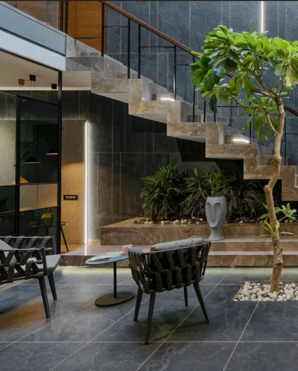 De Runa-collectie vangt de essentie van verfijnde leisteen, kenmerkend voor de landelijke sfeer en historische charme van dorpen en steden in Noord-Europa. Deze steen integreert naadloos met natuurlijke elementen en brengt een tijdloze elegantie in een eigentijdse vorm.