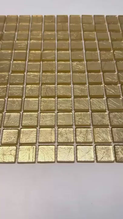 Ontdek het Gold-Glasmozaïek: breng een vleugje gouden elegantie in uw ruimte. Van vloer tot plafond of als stijlvolle rand, dit veelzijdige mozaïek is de perfecte manier om uw interieur te verfraaien. Of het nu gaat om een prachtige achterwand, een boeiende douchewand, of een decoratief element, dit mozaïek voegt een unieke charme toe aan uw neutrale interieur. Ervaar de schittering van kleur en textuur zelf. Ontdek vandaag nog de eindeloze mogelijkheden van het Gold-Glasmozaïek!