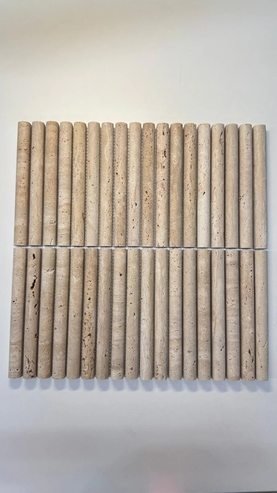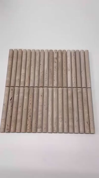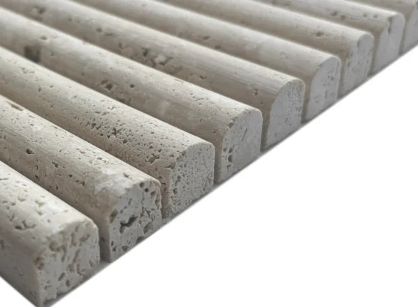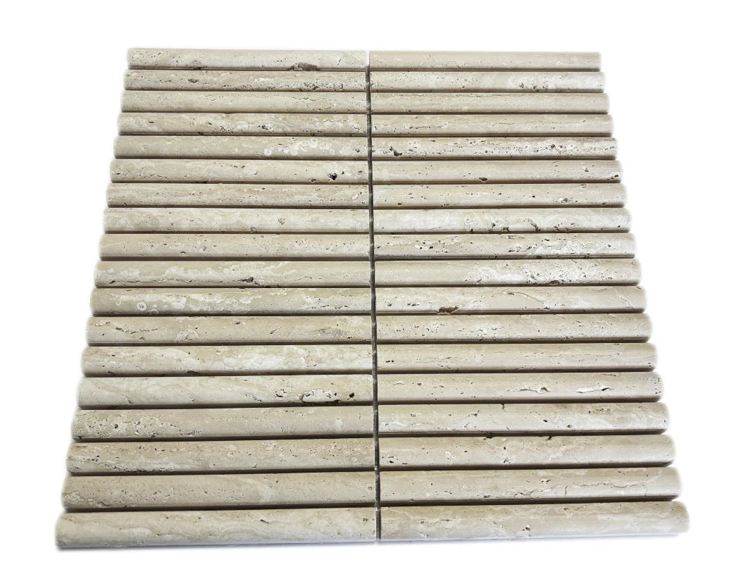 Breng stijl en karakter in je interieur met de Kit Kat Bull Nose Travertin mozaïek. Deze elegante in stijl mozaïeken zijn een tijdloze keuze voor het verfraaien van wanden en oppervlakken. Dankzij hun veelzijdigheid kun je ze op uiteenlopende manieren toepassen, van een verfijnde spatwand in de keuken tot een luxueuze douchewand of een opvallend decoratief accent.