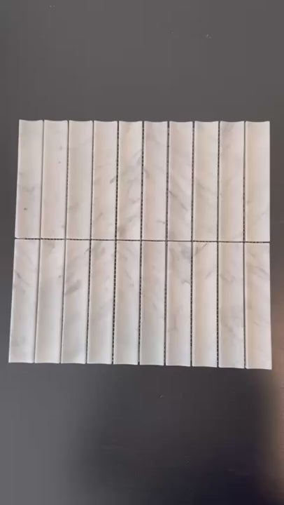 Voeg tijdloze elegantie toe aan je interieur met de Kit Kat Kreta Bull Nose Bianco Carrara Chiaro mozaïek. Deze verfijnde mozaïek, vervaardigd uit hoogwaardig Bianco Carrara marmer, brengt een klassieke en luxe uitstraling in elke ruimte. De afgeronde bull nose-rand zorgt voor een zachte, stijlvolle afwerking en is ideaal voor overgangen of randen.