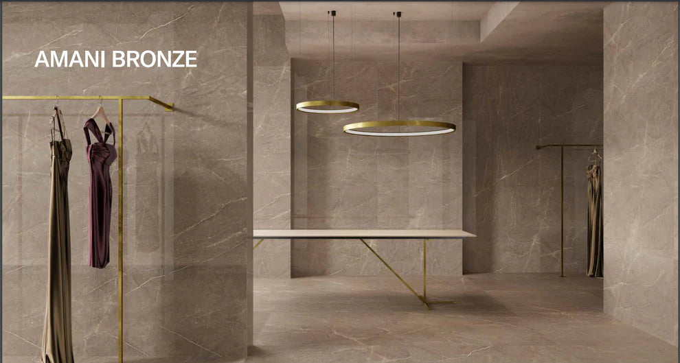 Het unieke formaat is zeer gewild voor vloeren en wanden. De tegels zijn kras- en vlekbestendig, en dankzij het sintered stone-proces – een techniek die wereldwijd slechts vier producenten beheersen – is elke tegel uniek in patroon en afwerking.