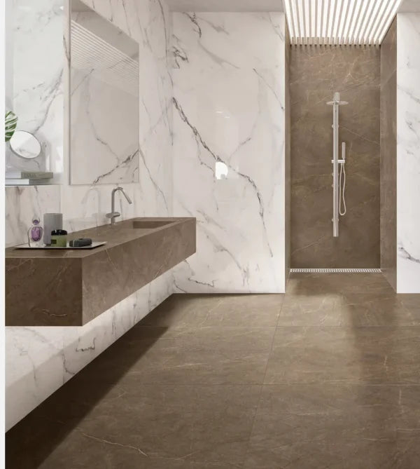 Van opvallende aders tot rustieke oppervlakken in een less-is-more stijl – deze tegels ogen als echte natuursteen, maar bieden het onderhoudsgemak van keramiek.