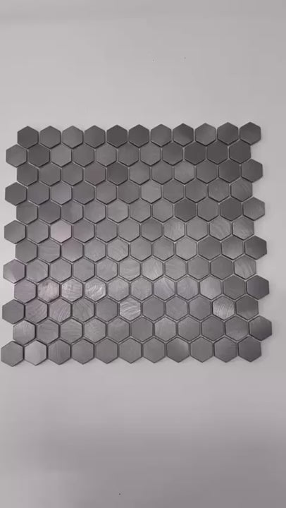 De Dune Reflections Gunmetal (29,5 x 30,5 cm) is een modern zwart hexagon mozaïek met een elegante metallook. De diepe, donkere kleur geeft iedere ruimte een krachtige en eigentijdse uitstraling, perfect passend bij een modern of industrieel interieur. Ideaal voor wanden en accenten in badkamers, keukens of andere ruimtes die een stoere én luxe touch verdienen.