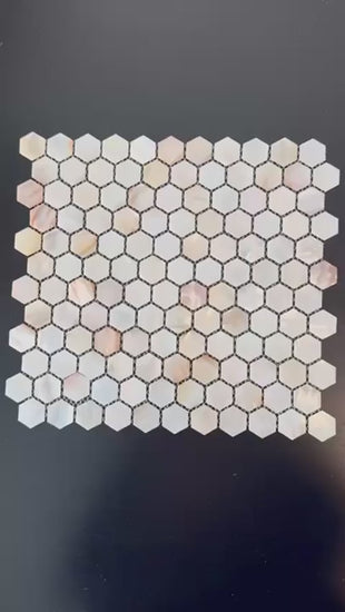 Breng een vleugje natuurlijke elegantie in huis met de White/Yellow Schelp Mozaïek. Deze verfijnde hexagon matten zijn vervaardigd uit echte schelp en hebben een prachtige gepolijste afwerking die het licht subtiel weerkaatst. De in elkaar grijpende rand zorgt voor een naadloze plaatsing, waardoor een luxe en doorlopend effect ontstaat.