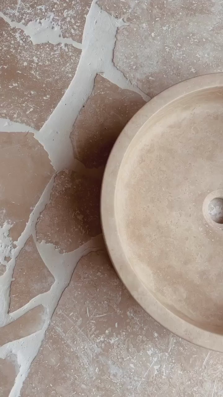 Op zoek naar een unieke travertin waskom die warmte en karakter toevoegt aan je badkamer, toilet of mudroom? Deze waskom is met de hand vervaardigd uit één massief blok travertin natuursteen en is allesbehalve standaard. Geen naden, geen verlijming, puur natuur, precies zoals het bedoeld is. Travertin is een natuurproduct. Kleur, structuur en tekening kunnen per waskom verschillen.